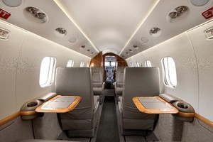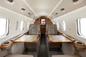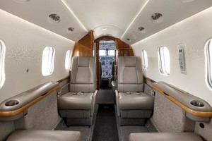 | Beautiful Eight passenger cabin features a forward one-place divan with 4 place club followed by 2 forward facing seats in the aft cabin. In addition, the aircraft has an aft lavatory with a belted lav seat. |