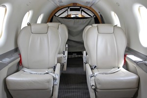 Executive interior configuration with beige grey leather seats. Current configuration is 6 place Executive plus 2 additional seats in rear.