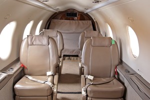Executive Interior Configuration with beige grey leather seats. Current configuration is 6 place Executive plus 2 additional seats in rear.
